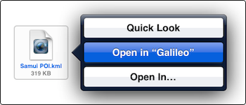 Once you have received the attachment on your phone simply tap and hold until the save menu appears and select “Open in Galileo” as shown here.